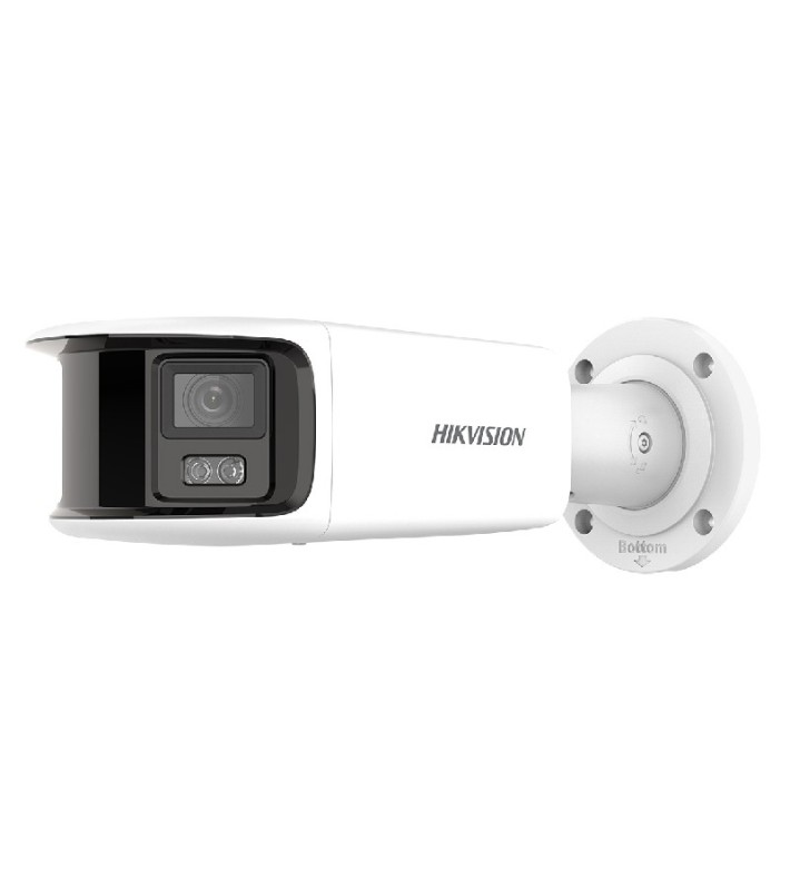 Δικτυακή κάμερα Bullet 8MP ColorVu πανοραμικής θέασης 180°, αποτελούμενη από 2 αισθητήρια 4MP και 2 φακούς 4mm, των οποίων οι εικόνες συνδυάζονται ψηφιακά εντός της κάμερας (stitching), παράγοντας μια υπερ-ευρυγώνια εικόνα χωρίς κενά και παραμορφώσεις. Μεγάλα αισθητήρια 1/1.8", φακοί υψηλής φωτεινότητας F1.0, εξαιρετικά υψηλή ευαισθησία 0.0005 Lux @ (F1.0, AGC ON) / 0 Lux with white light, έγχρωμη εικόνα ημέρα - νύχτα, αυτόματος λευκός θερμός φωτισμός Smart Light εμβέλειας ως 40 m,130dB WDR, 3D DNR, BLC, HLC, H.265+, ROI, VCAanalyticswithhumanandvehicletargetclassification: linecrossing / intrusion / region entrance / region exiting, Motion Detection 2.0, 1 alarm input, 1 alarm out, audioi/o, ενσωματωμένομικρόφωνο, δυνατότητα σήμανσης συναγερμού με λευκό φωτισμό που αναβοσβήνεικαι αναπαραγωγή ηχητικών μηνυμάτων *.wav από ενσωματωμένο μεγάφωνο 1 W97dB, υποδοχή κάρτας MicroSD/SDHC/SDXC ως 256 GB για τοπική καταγραφή video, βαθμός στεγανότητας IP67, τροφοδοσία PoE ή 12 VDC, κατανάλωση 10.5 W, (Π?Β?Υ) 118.6?305.4?105.1 mm.