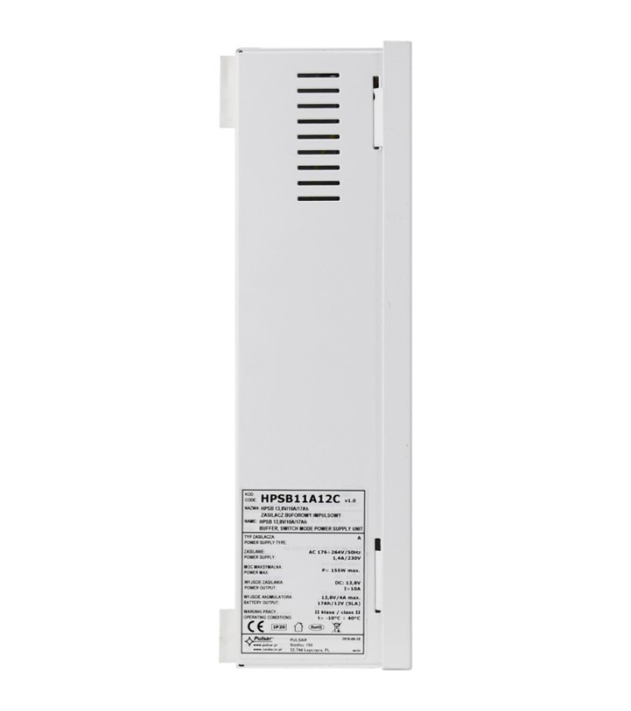 Τροφοδοτικό UPS, 13.8 VDC & 10 Α max, ρυθμιζόμενη τάση εξόδου, θέση για μπαταρία ως 18Αh (δεν περιλαμβάνεται), επιλογή ρεύματος φόρτισης 1 / 4Α, πολλαπλές προστασίες (και από πλήρη εκφόρτιση), διακόπτης tamper, (Π×Β×Υ) 305×(105+8)×305 mm.