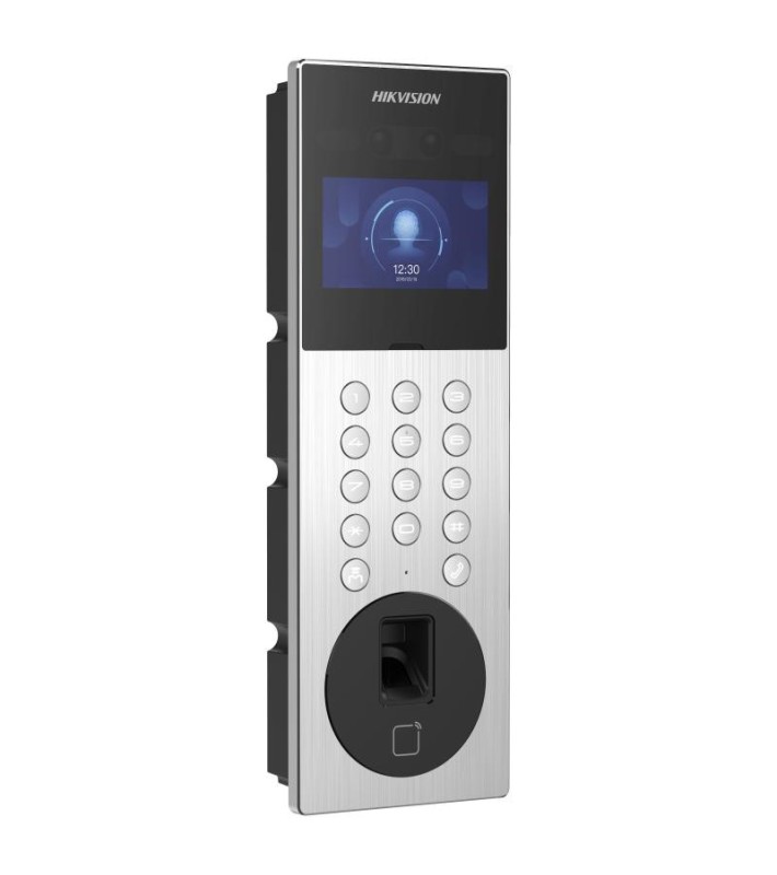 Video Intercom Face Recognition Door Station, με έγχρωμη οθόνη 4.3’’ ανάλυσης 800 x 480, δύο έγχρωμες κάμερες HD 1080p υψηλής ευαισθησίας, ευρεία γωνία θέασης 120°, true WDR, υπέρυθρο φωτισμό (IR), αναγνώριση προσώπων, αναγνώστη δακτυλικών αποτυπωμάτων, αναγνώστη καρτών proximity Mifare, μικρόφωνο και μεγάφωνο, noise suppression & echo cancellation, συμπίεση Η.264, δυνατότητα sub-stream, 1 έξοδο ρελέ για έλεγχο κλειδαριάς, 4 είσοδοι alarm, διακόπτη Tamper, δυνατότητα σύνδεσης χωριστού καρταναγνώστη μέσω θύρας RS485, Ethernet, βαθμό στεγανότητας IP65, τροφοδοσία 12VDC, κατανάλωση 13 W, χωνευτή τοποθέτηση, (ΠxBxY) 124x44x373 mm.  Μπορεί να χρησιμοποιηθεί αντί του modular IP station, για πρακτικά απεριόριστο εσωτερικών, υποστηρίζει ξεκλείδωμα πόρτας με ανίχνευση προσώπου / δακτυλικό αποτύπωμα / κάρτα / εισαγωγή κωδικού / εντολή από εσωτερικό monitor και διαθέτει αυτόνομη λειτουργία για υποστήριξη ως 10.000 χρηστών, 5.000 προσώπων / 5.000 αποτυπωμάτων / 50.000 καρτών.