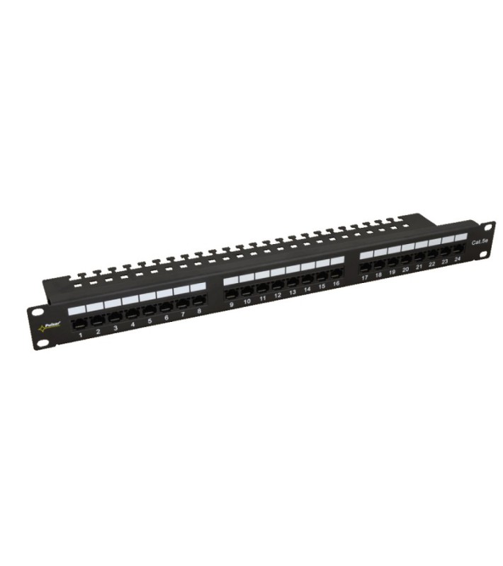 Patch Panel 24 ports για καλώδιο UTP Cat 5e, για rack 19, ύψος 1U, περιλαμβάνονται εξαρτήματα στήριξης.