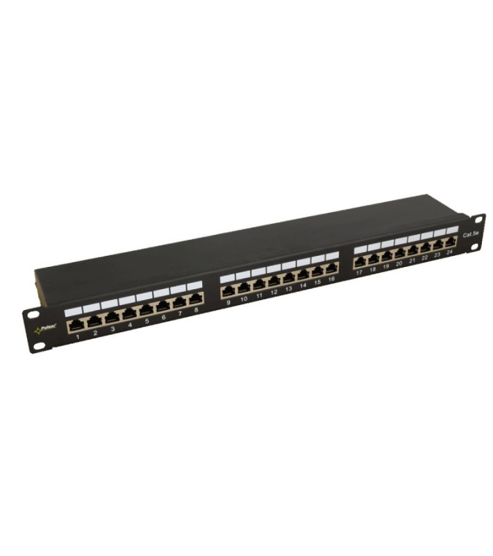 Patch Panel 24 ports για καλώδιο FTP Cat 5e, για rack 19, ύψος 1U, περιλαμβάνονται εξαρτήματα στήριξης.