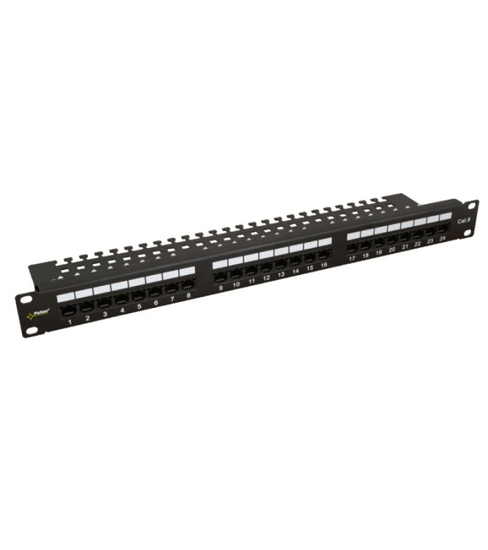 Patch Panel 24 ports για καλώδιο UTP Cat 6, για rack 19, ύψος 1U, περιλαμβάνονται εξαρτήματα στήριξης.
