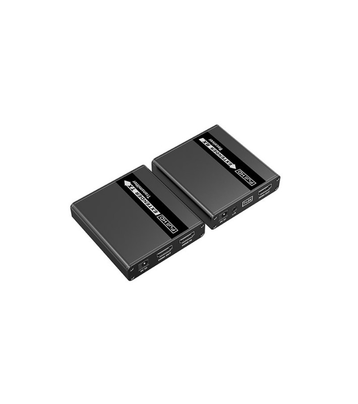 Αρχεία για τo Προϊόν Σύστημα (πομπός + δέκτης) για μετάδοση σήματος HDMI 1080p, από τον πομπό προς το δέκτη (point to point), μέσω 1 καλωδίου δικτύου Cat5e / 6 / 6A / 7, σε απόσταση έως και 70m, με μηδενική καθυστέρηση (zero latency), μετάδοση εντολών από τηλεχειριστήρια υπερύθρων προς 2 κατευθύνσεις (bidirectional IR pass-back, από τον δέκτη προς τον πομπό ή αντίστροφα), έξοδο HDMI loop through στον πομπό (δεν απαιτείται χωριστό HDMI splitter για την οδήγηση τοπικού monitor), στερεοφωνική έξοδο ήχου 3.5mm L/R στον δέκτη (για την οδήγηση ενισχυτών και ηχείων), φωτεινές ενδείξεις LED για τροφοδοσία / σύνδεση HDMI, μπουτόν reset, προστασία από υπερτάσεις (lightning / surge / ESD), μεταλλικό περίβλημα κράματος αλουμινίου. Υποστήριξη 1080p@60Hz, HDCP 1.4, HDMI 1.3, HDR10, YUV4:4:4, EDID pass-through με αυτόματη προσαρμογή στην ποιότητα του καλωδίου για τη βελτιστοποίηση της εικόνας, audio formats PCM / LPCM / DTS HD / DTS Audio. Περιλαμβάνονται 2 τροφοδοτικά 230 VAC / 5 VDC, δέκτης IR με καλώδιο, πομπός IR με καλώδιο και βάσεις στήριξης.